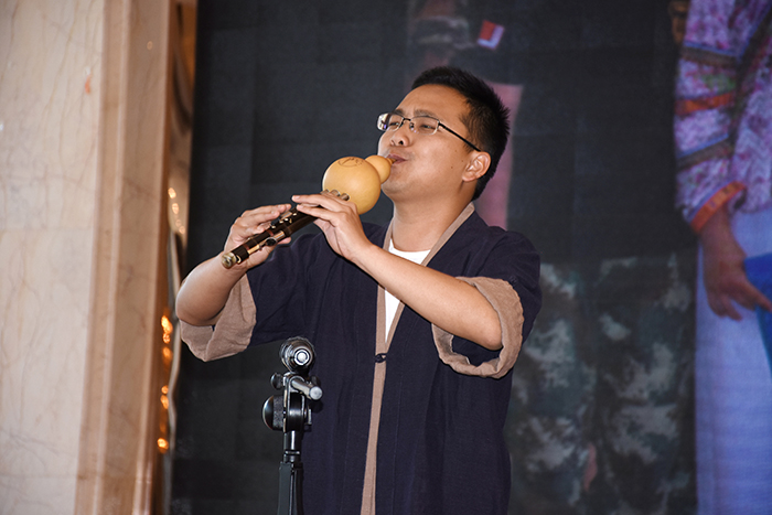 國(guó)學(xué)課、音樂(lè)課(葫蘆絲)、書(shū)法課作為我校的必修課程,在第一場(chǎng)培訓(xùn)講座結(jié)束后的課間小歇,國(guó)學(xué)老師兼音樂(lè)老師馬文駿、書(shū)法教師韋昌毅一起登臺(tái),與家長(zhǎng)們見(jiàn)面,讓家長(zhǎng)清晰地感知孩子在校學(xué)習(xí)時(shí),到底是什么樣的老師在引領(lǐng)自己的孩子。同時(shí),魯校長(zhǎng)還向家長(zhǎng)們闡述學(xué)校開(kāi)設(shè)這幾門(mén)課的必要性,一方面是培養(yǎng)孩子的文化素養(yǎng),另一方面是凈化孩子的心靈。受現(xiàn)場(chǎng)氣氛的感染,馬老師還現(xiàn)場(chǎng)為家長(zhǎng)們吹奏了一曲葫蘆絲《歡歌炫舞》,絲絲竹聲,或歡快活潑、或悠揚(yáng)深沉,讓家長(zhǎng)們?cè)谂嘤?xùn)會(huì)中學(xué)而不累。