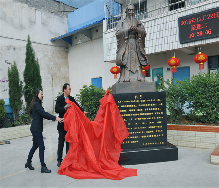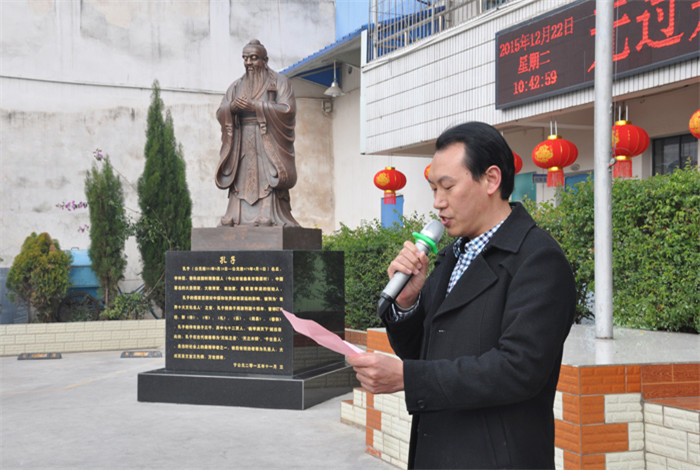 2015年12月22日上午,我校隆重舉行了孔子雕像落成典禮暨揭幕儀式。學校全體師生及校領(lǐng)導參加了儀式。儀式由弟子規(guī)老師馬文駿主持。