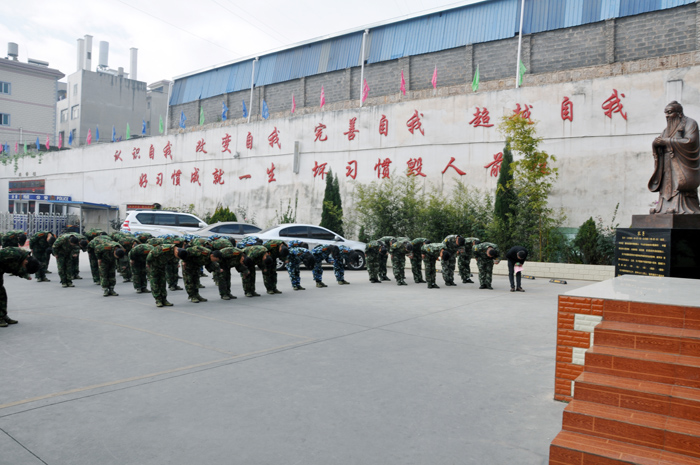 全體師生行鞠躬禮,表達對孔子的崇敬之情