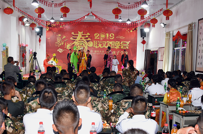 瑞犬凱歌辭舊歲,金豬送福迎新春。2019年2月5日(大年初一)晚,好孩子學(xué)校多功能廳成為了師生聯(lián)歡的舞臺(tái)、歡樂的海洋,我!2019年春節(jié)聯(lián)歡晚會(huì)”在這里隆重舉行。學(xué)校校長(zhǎng)魯植、副校長(zhǎng)兼總教官毛積敏、辦公室主任單官昱、總務(wù)主任李月、辦公室副主任施頻頁、副總教官王濤、張汝云等中層以上干部及老師參加了活動(dòng)。我校畢業(yè)生李哲、韓凈宇同學(xué)及其父親也出席了本次晚會(huì)。