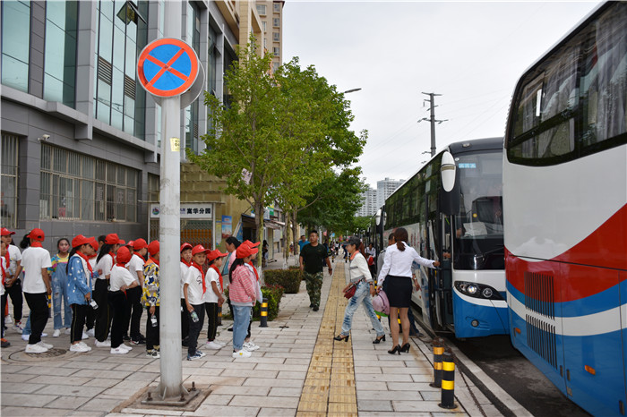 由于東湖小學(xué)離好孩子學(xué)校有一段距離,為保證孩子們的路途安全,學(xué)校領(lǐng)導(dǎo)提前安排好6輛大客車到學(xué)校早早等待,把全校師生和家長安全接到好孩子學(xué)校。