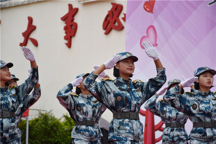 如果說前期的節(jié)目是一次又一次的高潮,那最后好孩子學(xué)校女生方隊出場表演的《青春集合在軍旗下》,則把高潮又推向了另一更高度。舞蹈展現(xiàn)了孩子們積極、向上、樂觀的精神風(fēng)貌和小軍人的別樣風(fēng)采,吸引了臺下觀眾的眼球,贏得了場下觀眾陣陣熱烈掌聲。
