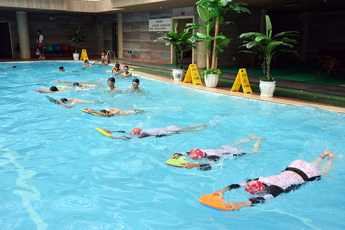 經(jīng)過學(xué)校前期的嚴(yán)密部署和周密安排,成立專門領(lǐng)導(dǎo)小組,對課程的設(shè)置,以及教學(xué)中遇到的問題作全面考慮,集思廣益,保證游泳課順利、安全開課。早在開課前,學(xué)校便多次對同學(xué)們進(jìn)行了充分有效的安全教育,要求全體同學(xué)嚴(yán)格按照教練的要求在泳池內(nèi)開展學(xué)習(xí)。為確保教學(xué)的質(zhì)量與安全,學(xué)校聘請教學(xué)經(jīng)驗(yàn)十分豐富的專業(yè)游泳教練,不僅技術(shù)過硬,而且擅長針對青少年開展游泳教學(xué),保證上課質(zhì)量。療養(yǎng)院的領(lǐng)導(dǎo)也給予了大力支持和保障,為孩子們提供了優(yōu)質(zhì)的環(huán)境和服務(wù)。游泳館嚴(yán)格按照《游泳池水質(zhì)標(biāo)準(zhǔn)》進(jìn)行水質(zhì)監(jiān)測,保證干凈衛(wèi)生,通風(fēng)照明良好,各項設(shè)施完好,救援設(shè)備充足,且水溫恒溫在25—29℃。同時,游泳館還安排教練員在指定崗位隨時做好充分準(zhǔn)備,全程嚴(yán)密關(guān)注孩子的學(xué)習(xí),全面做好安全防護(hù)工作。