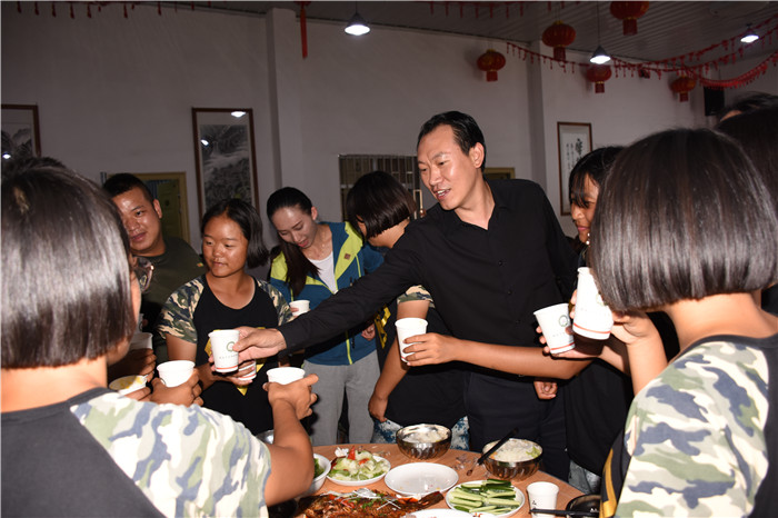 下午,孩子們幫著洗菜、打掃衛(wèi)生,大家忙碌了一個下午,香噴噴的飯菜終于出鍋上桌了。晚上六點,全體師生在餐廳就坐,魯校長作了中秋致辭后,大家便開心地吃了起來!有些同學(xué)還相互舉杯表達(dá)節(jié)日的祝福,只聽見一浪高過一浪的“祝爸爸媽媽中秋節(jié)快樂”、“祝老師們中秋節(jié)快樂”的祝福語響徹餐廳。席間,魯校長也被大家的熱情感染,忍不住走到孩子們中間敬茶祝福。看著教學(xué)中嚴(yán)厲的校長,生活中卻是如此關(guān)切地噓寒問暖、和藹可親,像父母,又像兄長,同學(xué)們非常高興!整個場面洋溢著歡快的節(jié)日氛圍。