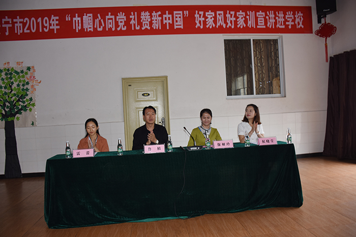 2019年9月12日上午,為深入貫徹習(xí)總書記關(guān)于家庭建設(shè)的重要指示精神,大力弘揚(yáng)和踐行社會(huì)主義核心價(jià)值觀,深刻領(lǐng)悟中華民族傳統(tǒng)美德的實(shí)質(zhì)內(nèi)涵,安寧市婦聯(lián)與我校聯(lián)合舉辦“巾幗心向黨 禮贊新中國(guó)”為主題的好家風(fēng)、好家訓(xùn)、好家教宣講活動(dòng)。