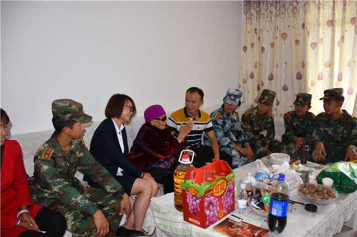 這些老人中,年齡從60歲到100歲之間不等,當(dāng)我們敲開(kāi)一戶戶老人的家門,送上大米、油、水果時(shí),老人們眼含熱淚,不停道謝。孩子們坐在老人身邊噓寒問(wèn)暖、捶背揉肩、攙扶老人行走、為老人蓋被......這些小小的舉動(dòng)就像大大的太陽(yáng)溫暖著老人們的心。但在一次次的近距離接觸中,每家每戶不同的境遇卻一次次撞擊著我們的心扉。有的因?yàn)閮号㈨樁蚕硗砟;有的因(yàn)榉蚱抟簧嗍睾芏,卻要用余生懷念的憂傷落寞;有的老伴相依為命,一生相守白頭......跟著老人們不同的境遇,聆聽(tīng)老人們講述的故事,我們的心里或艷陽(yáng)高照,或大雨傾盆。但不論生活如何艱辛,老人們樂(lè)觀、堅(jiān)韌的品格給我們留下的印象卻是最深刻的。