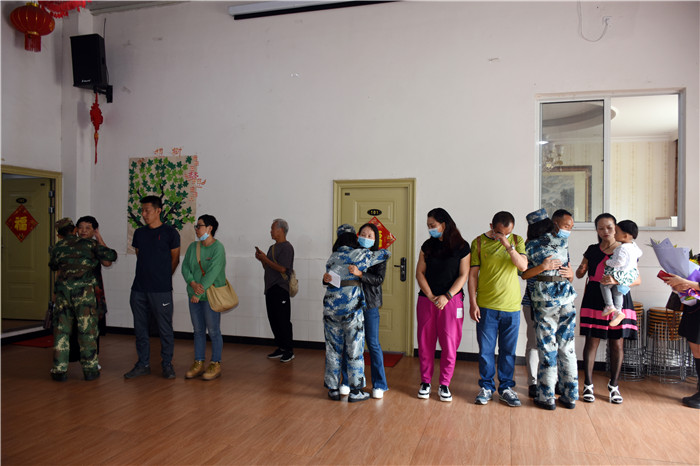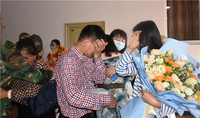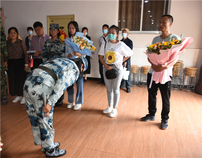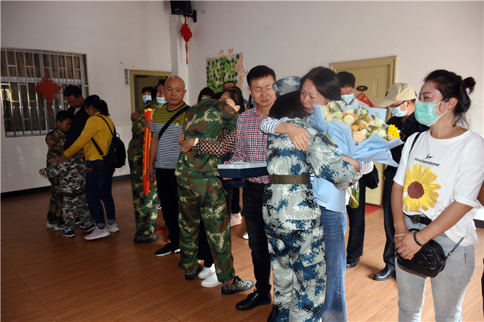 家長(zhǎng)在老師的帶領(lǐng)下走進(jìn)多媒體教室,隨著一聲“向后轉(zhuǎn)”的口令后,8位孩子飛一般地沖到父母面前,相擁而泣,哭成一片……這種感動(dòng)的場(chǎng)面感染著在場(chǎng)的每一個(gè)人!