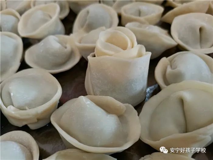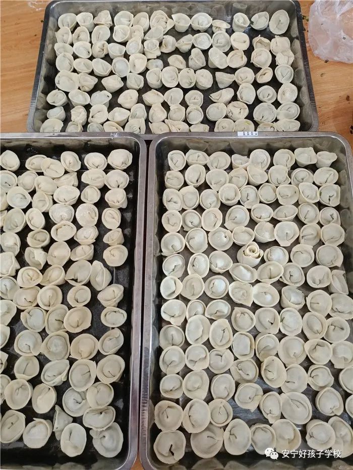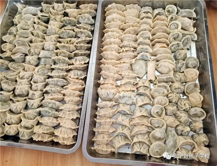 孩子們包出來的餃子花樣繁多、千姿百態(tài),有敦實厚重的,有別致精巧的,還有四不像的?粗槐P盤別出心裁但都裹滿愛意的餃子,看著一張張掛滿面粉但都笑容燦爛的面容,吃著香溢滿口的餃子,別樣的新春喜慶連連。