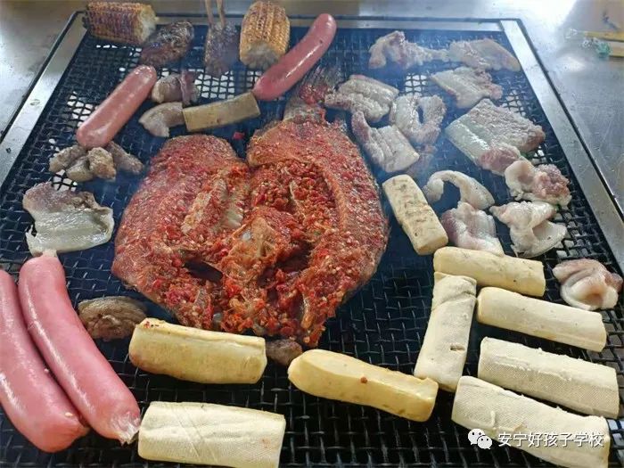 豐盛的午餐是掃除一早疲憊的良方。在老師們的精心準(zhǔn)備下,孩子們親自動(dòng)手開始自助燒烤。大家深深知道“自己動(dòng)手,豐衣足食”的道理,一個(gè)個(gè)爭(zhēng)先恐后地幫著揀菜、洗菜,分工明確、進(jìn)展神速。大家一邊燒烤一邊唱歌聊天,燦爛的笑臉競(jìng)相綻放,縷縷青煙伴隨著孩子們的歡聲笑語縈繞在莊園上空。