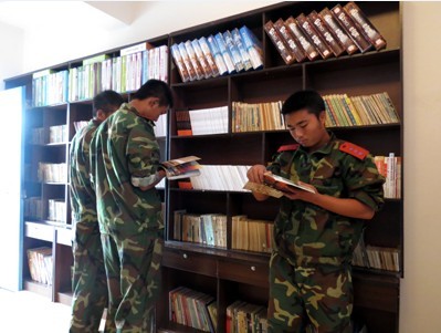 學(xué)生在多媒體教室觀看建軍90周年閱兵式