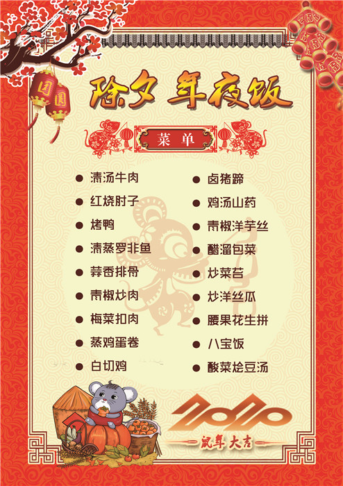 過年了 !孩子們吃什么?這是學校領導幾天來一直思考的問題。經過與學校營養(yǎng)師、食堂廚師們多次商議后,本著營養(yǎng)、健康、不浪費,又要保證孩子每餐都能吃上新鮮可口的飯菜,終于議定了菜單,現(xiàn)予以公布。祝孩子們新年快樂!祝全體家長萬事如意!
