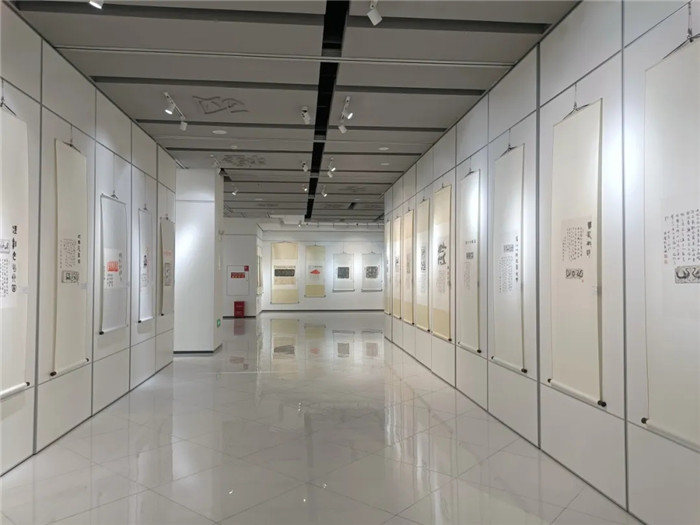 本次展覽,由安寧市書(shū)法家協(xié)會(huì)名譽(yù)主席李文潔、安寧市書(shū)法家協(xié)會(huì)主席李艷東(我校書(shū)法教師)兩位書(shū)法家將各自收藏多年的金石拓片進(jìn)行了題跋創(chuàng)作,共遴選出120余幅金石題跋珍品進(jìn)行展出,形式多樣,涉及面廣,涵蓋了經(jīng)典碑帖、唐人墓志、秦磚漢瓦、銅鏡銘文、殘石畫(huà)像等門(mén)類。書(shū)法教師李艷東現(xiàn)場(chǎng)解析展品中書(shū)體演變脈絡(luò),結(jié)合《唐崔賁墓志銘》《裴敬墓志》等經(jīng)典碑帖,闡釋“透過(guò)刀鋒看筆鋒”的臨摹要義。