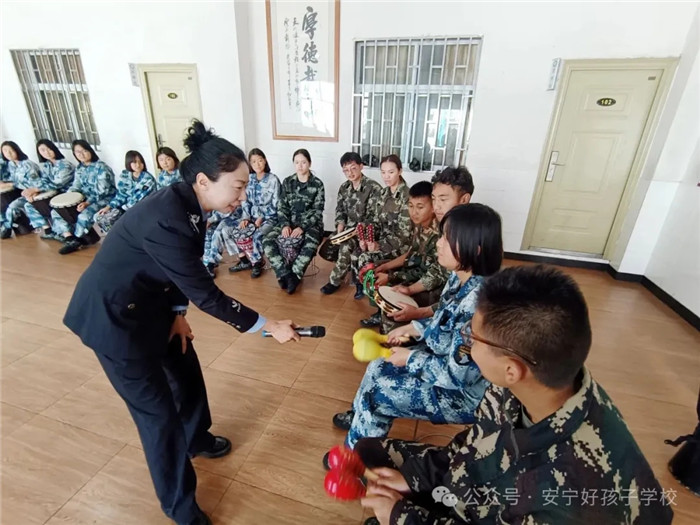 專題講座后,“鼓舞悅動(dòng)煥心聲”團(tuán)體輔導(dǎo)活動(dòng)將現(xiàn)場(chǎng)氛圍推向高潮。省二所教育矯治科副科長(zhǎng)錢錦彩運(yùn)用前沿的“音樂療法”理念,帶領(lǐng)學(xué)生們體驗(yàn)非洲鼓、沙錘、鈴鼓等樂器的獨(dú)特魅力。從基礎(chǔ)節(jié)奏教學(xué)入手,指導(dǎo)學(xué)生掌握簡(jiǎn)潔明快的節(jié)奏要點(diǎn),隨后引導(dǎo)大家跟隨指揮默契配合,共同演奏樂曲。