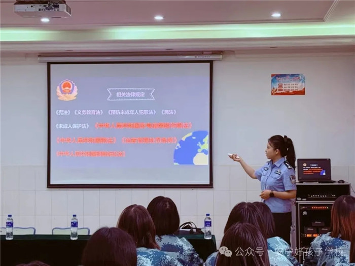 為進一步增強我校師生的法治觀念,營造安全、和諧的校園環(huán)境,2025年8月22日,安寧市公安局連然派出所黃韻璇警官走進我校為全體師生帶來了一場生動實用的“守護青春之美”法治專題講座。